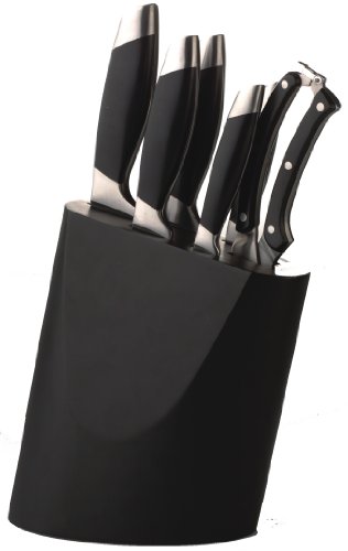 - Set includes: 3-1/4-Inch paring knife, 5-Inch utility knife, 8-Inch carving knife, 8-Inch chef's knife, 8-Inch bread knife, pair of poultry shears and wooden block
